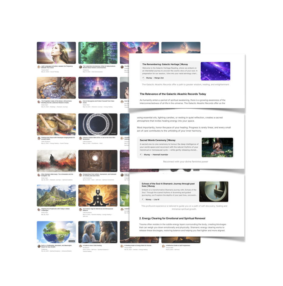 Munay is a living field where curated, transformational practitioners are not just listed, but lifted. This is a space for those who carry ancient wisdom, energetic mastery, and grounded presence. A platform designed to expand your reach, support your rhythm, and protect your purpose.